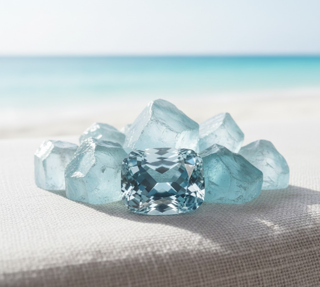古来より、航海士たちがお守りとして大切にしてきたこの石は、穏やかな幸福を象徴する宝石として愛されてきました。