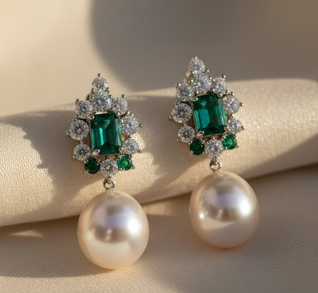 プラチナ・ホワイトゴールド: パールの持つ純潔で清廉なイメージをより一層際立たせ、凛とした知的な印象を与えます。パールの白さが最も美しく映える組み合わせであり、冠婚葬祭などのフォーマルな場では「王道のスタイル」として最も信頼されている仕立てです。
