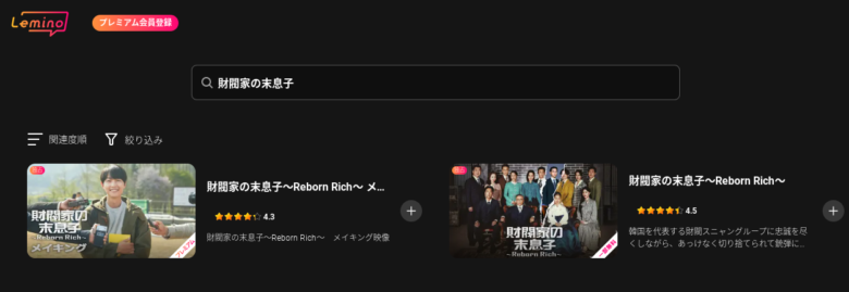 Leminoには無料体験期間があり、「財閥家の末息子」も見放題作品なので登録すれば無料で見ることができます。